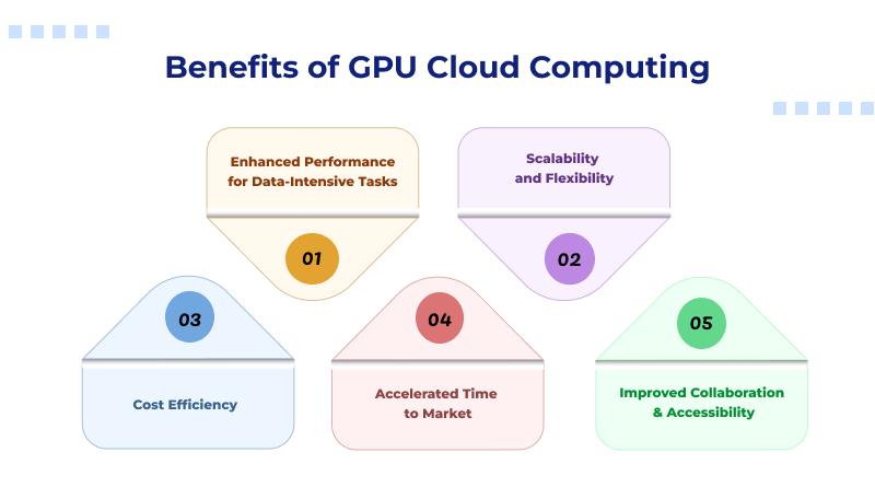 GPU cloud computing is structured as an operational expense or a capital expenditure solution. Enterprises looking for High-Performance Computing (HPC) applications get the advantage of web hosting mission-critical websites and applications. Advantages like enhanced resource efficiency and flexibility, accelerated processing speeds, quicker deployment, and global accessibility are possible with the help of GPUs. Below, we have mentioned several benefits of GPU cloud computing.