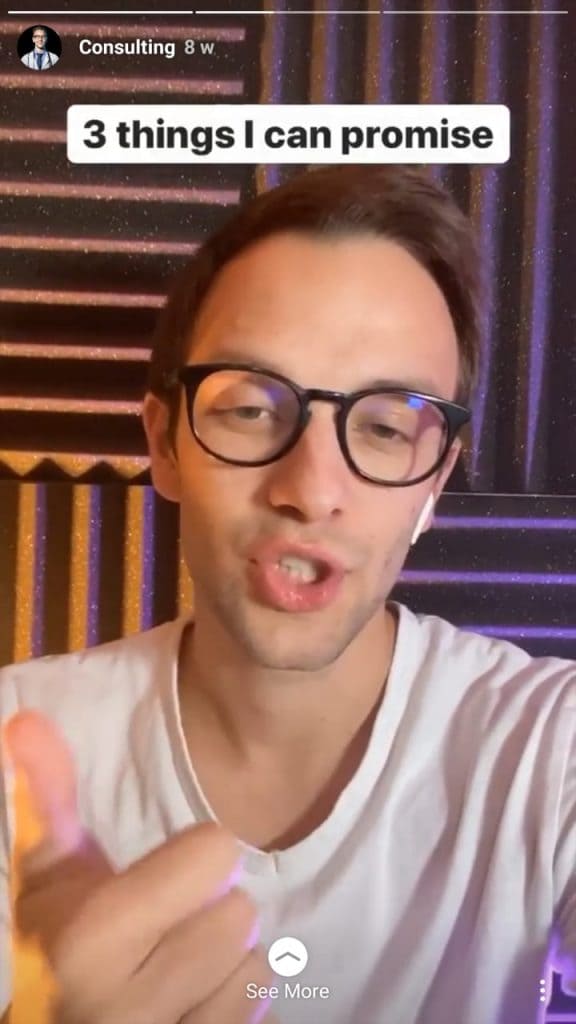 In this example below, the Instagram Influencer Dave Tallas features a video about Instagram marketing consultancy where he explains what will be offered to you in the video: