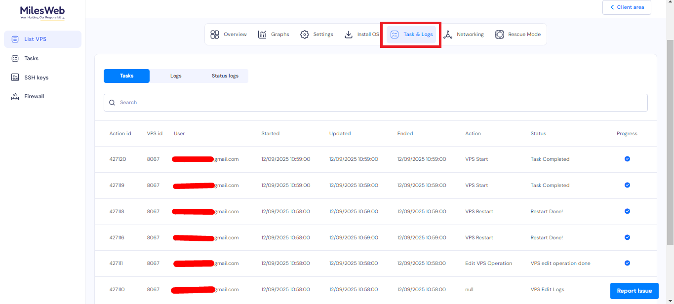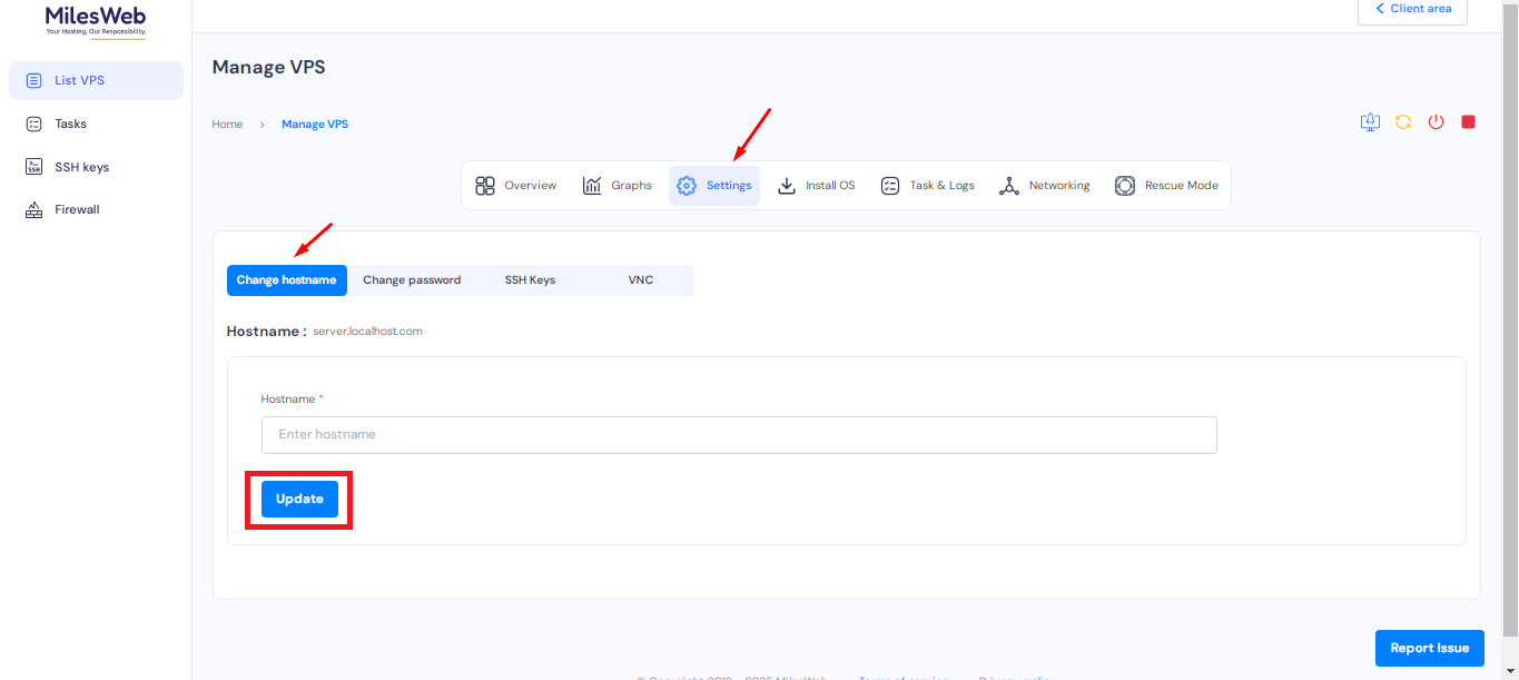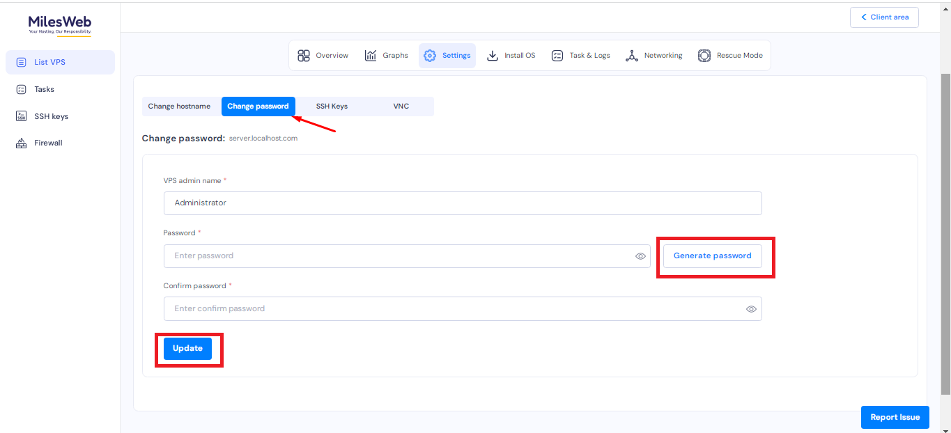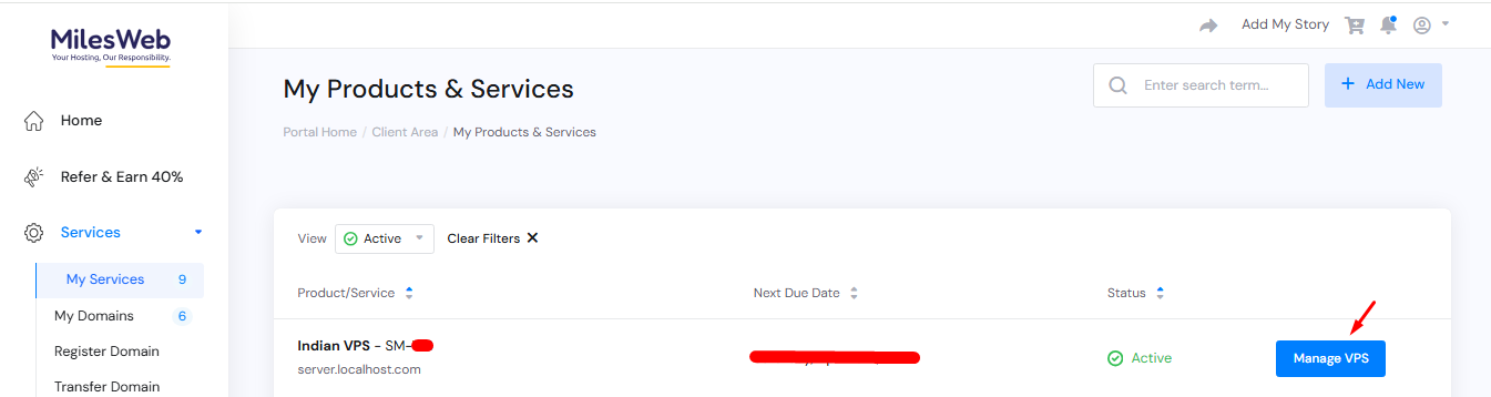 To access advanced VPS controls, log in to your MilesWeb client area using your registered email address and password.