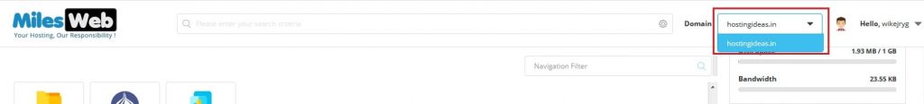 2. In the top-right corner, select the domain for which the PHP version needs to be changed.