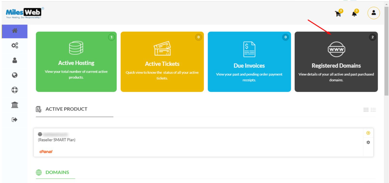 3. Once you signed in to the Clientarea, click on the Registered Domains option.