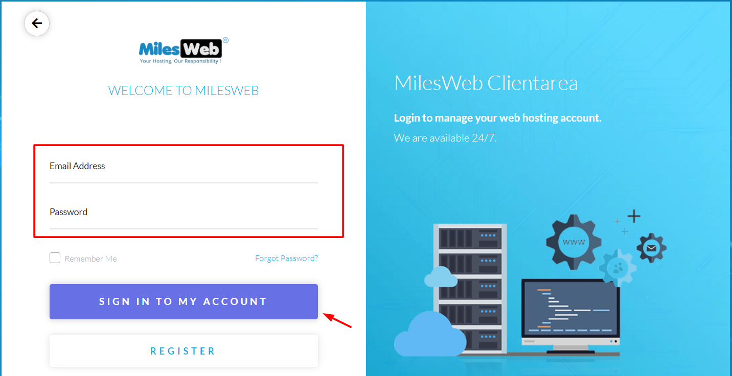 2. Enter your login details and click the SIGN IN TO MY ACCOUNT button.
