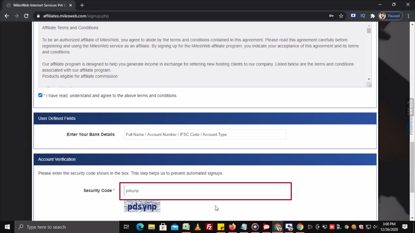 - In the User Defined Field, enter your bank details such as your full name, bank account number, IFSC, account type in this textbox. Your commission will be deposited in the same bank account.